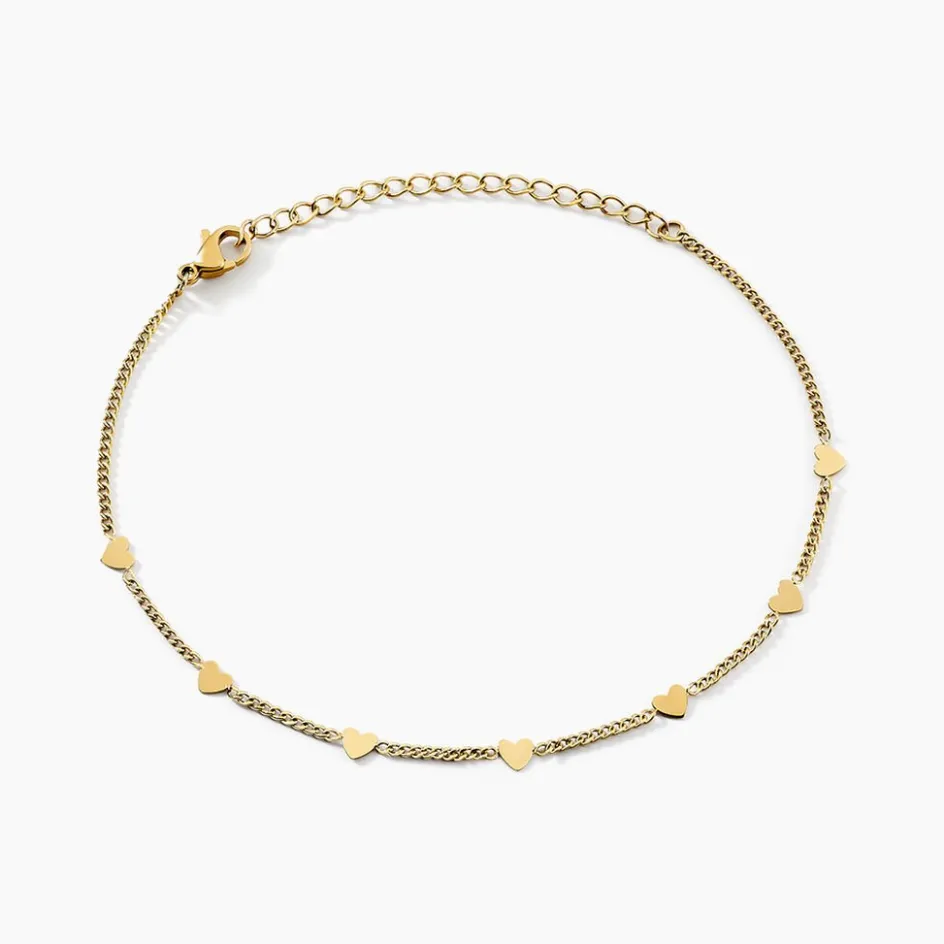 Bracelet Acier Jaune Coeurs Maille Forcat 17+5cm