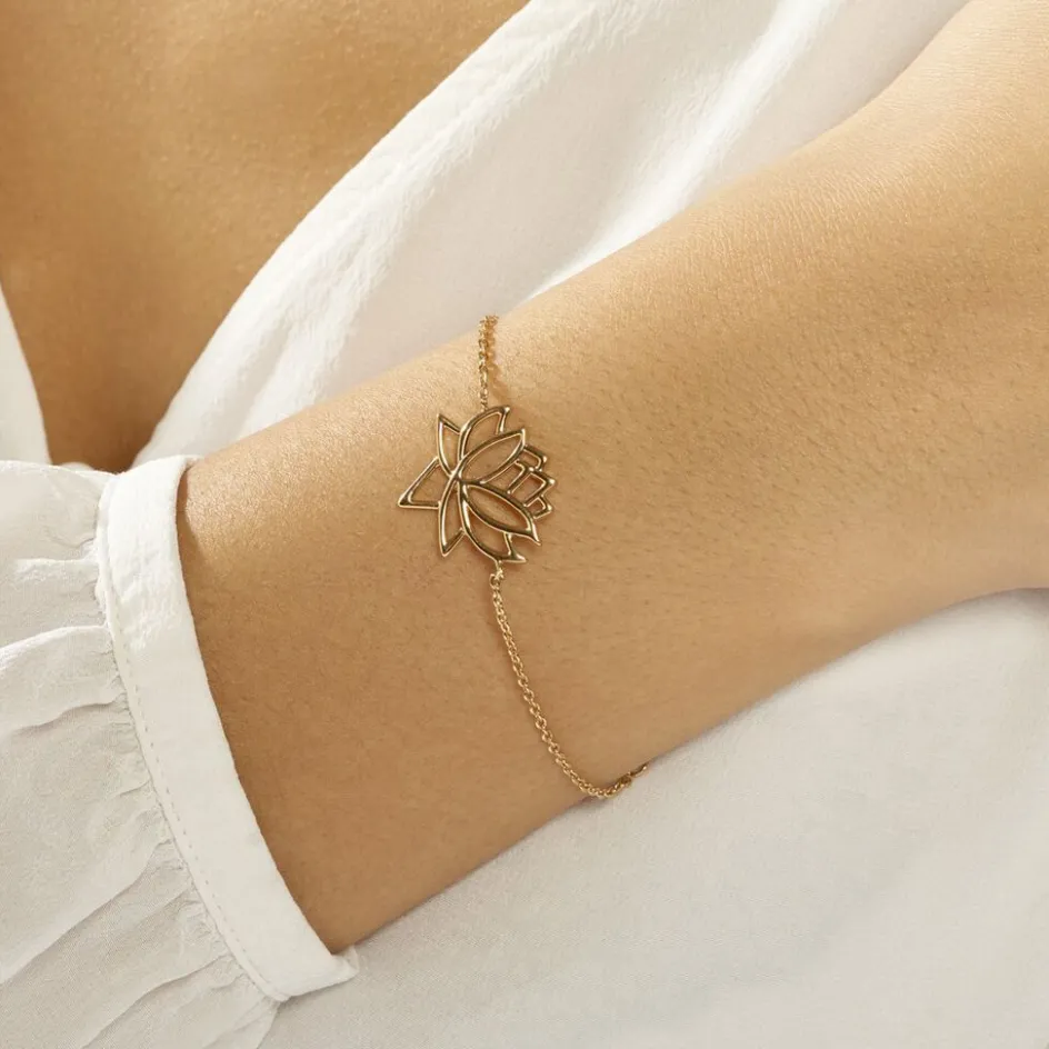 Bracelet Plaqué Or Jaune Forme Lotus 18cm
