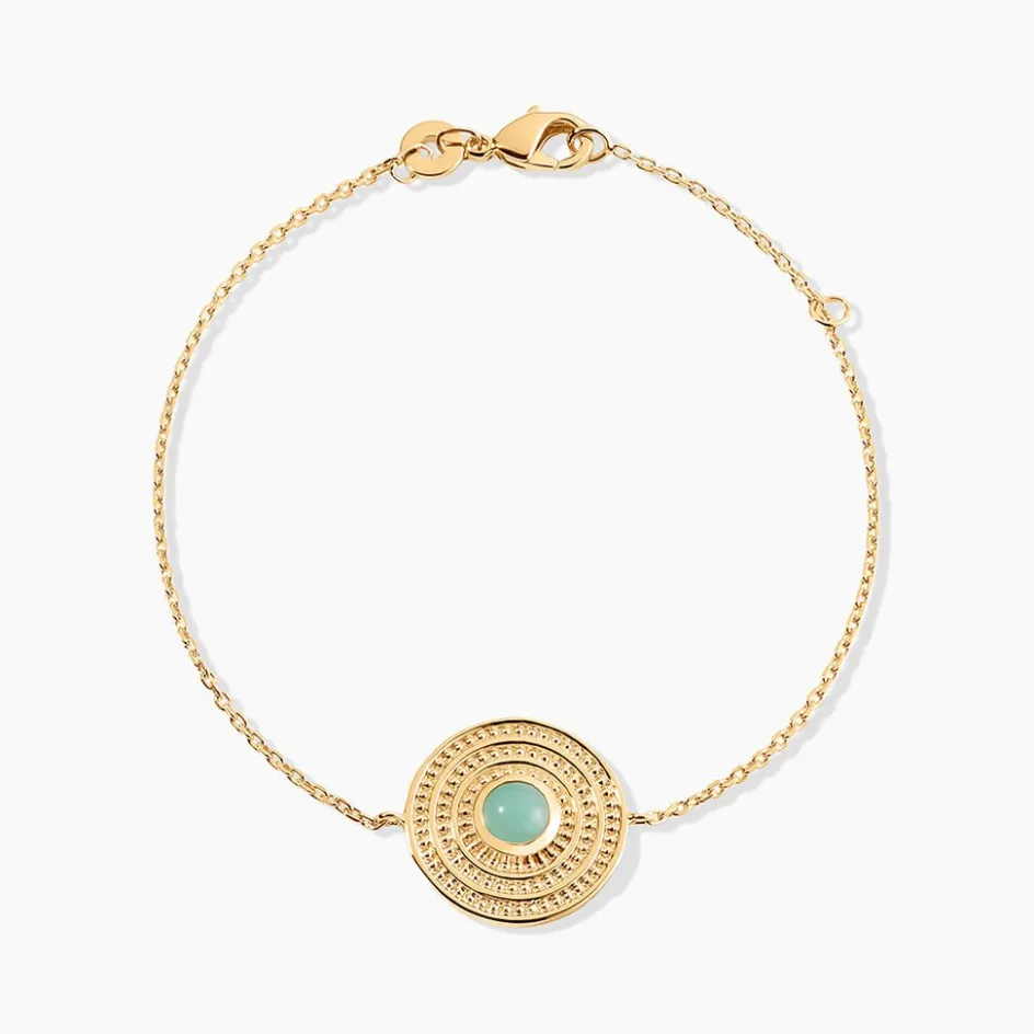 Bracelet Plaque Or Jaune Rond Aventurine Verte Maille Forcat 18cm
