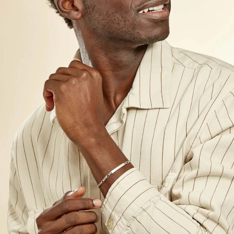 Bracelet Identite Argent Blanc 925/1000 Maille Alternee 1/3 Largeur 3mm Longueur 18.5cm