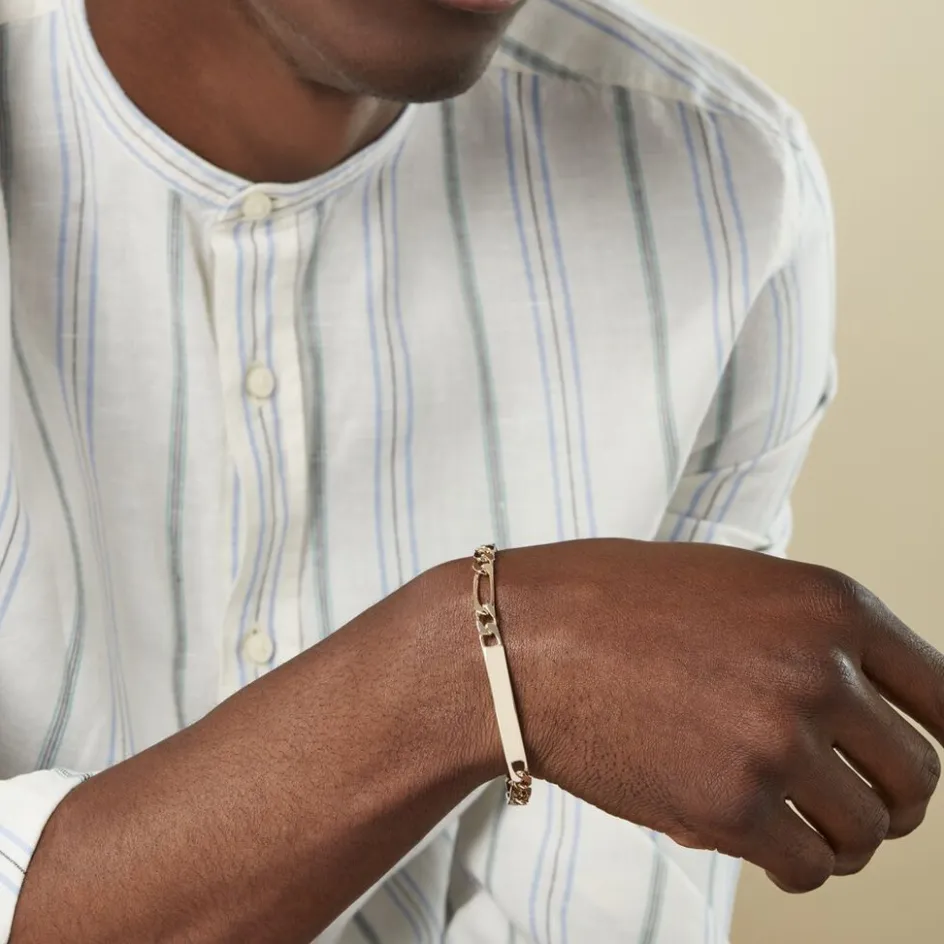 Bracelet Identite Plaque Or Jaune Maille Alternee 1-3 6mm 20cm