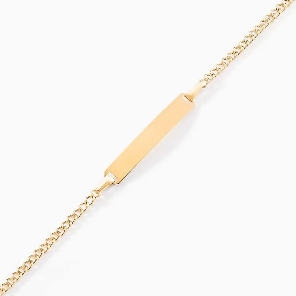 Bracelet Identité Bebe Or Jaune 375/1000 Plaque Rectangle Maille Gourmette 17cm