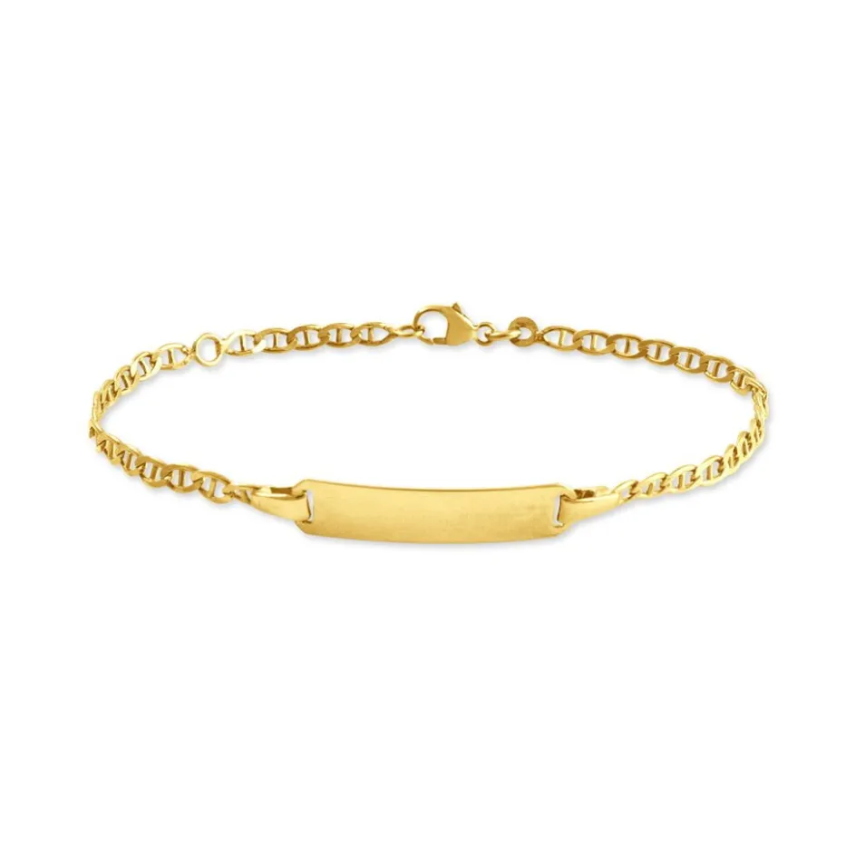 Bracelet Identite Bebe Or Jaune 375/1000 Plaque Rectangle Large Maille Marine 13/15cm
