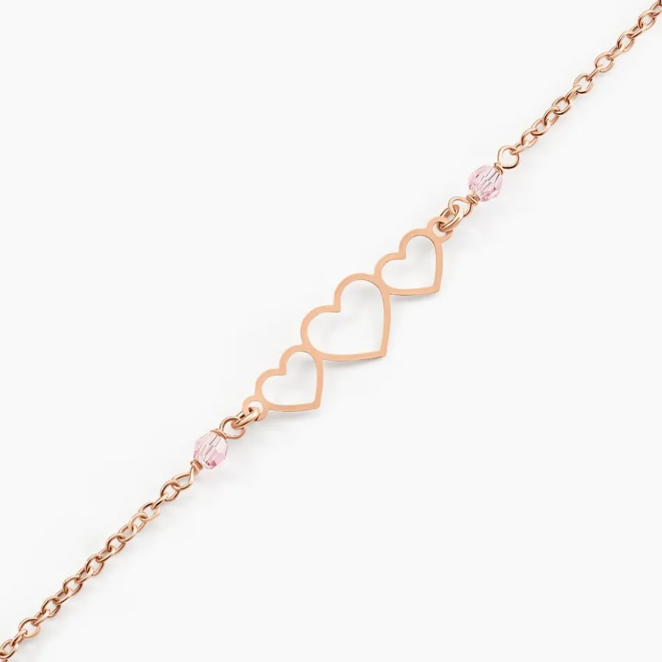 Bracelet Argent Rose 925/1000 Coeurs Ajoures 2 Oxydes De Zirconium Roses 19cm