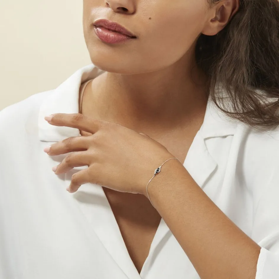 Bracelet Or Blanc 375/1000 Trilogie Saphirs Et Diamants 18.5cm