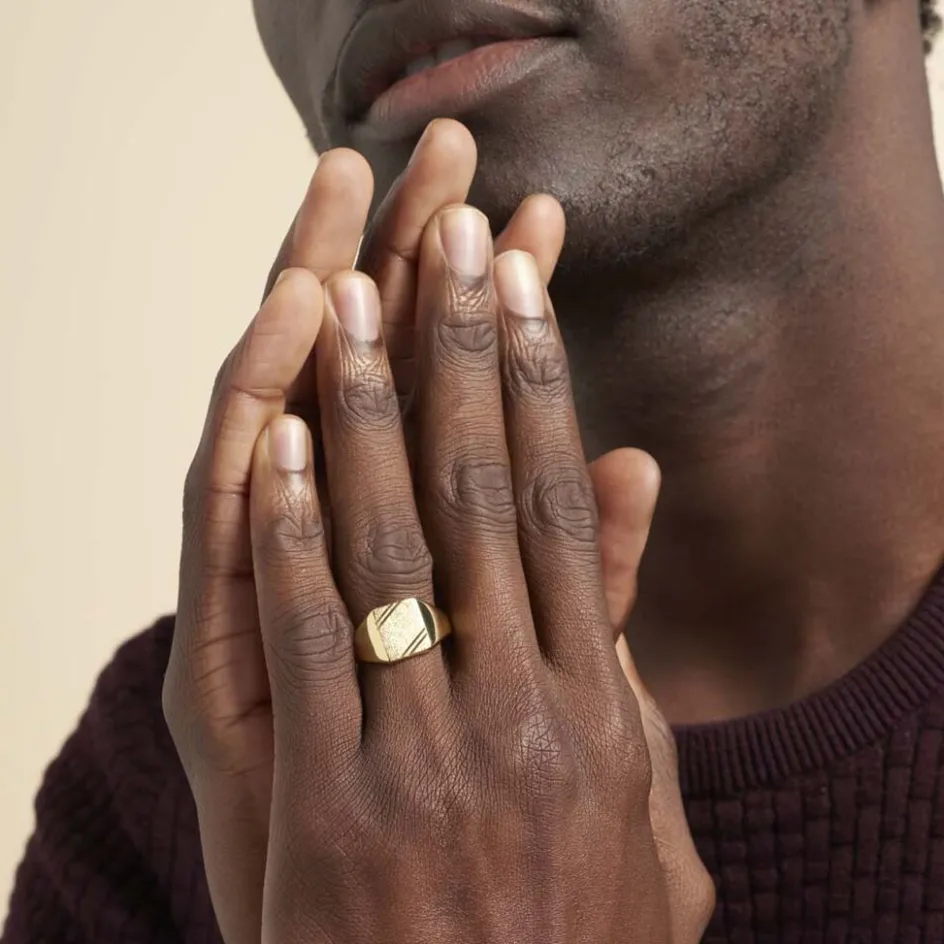 Chevaliere Plaqué Or Jaune Plateau Carre Cisele