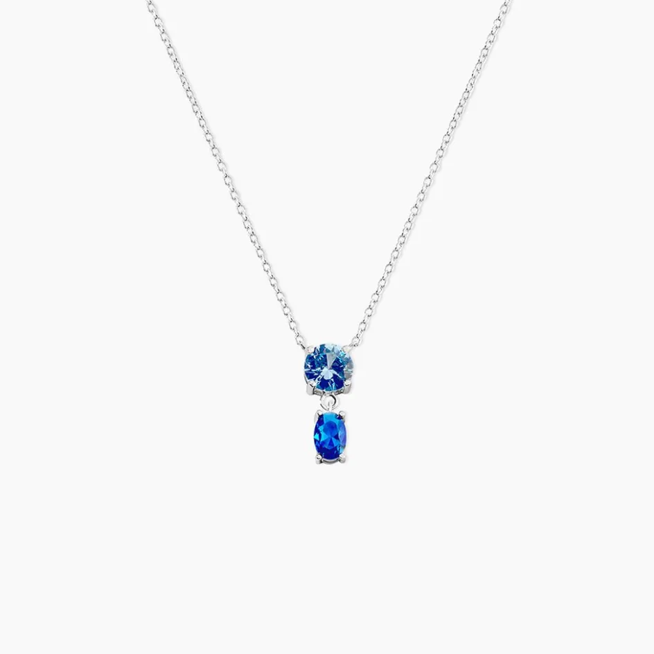 Collier Argent Blanc 925/1000 Serti Griffes Oxydes De Zirconium Bleu Clair Et Bleu Maille Forçat 45cm