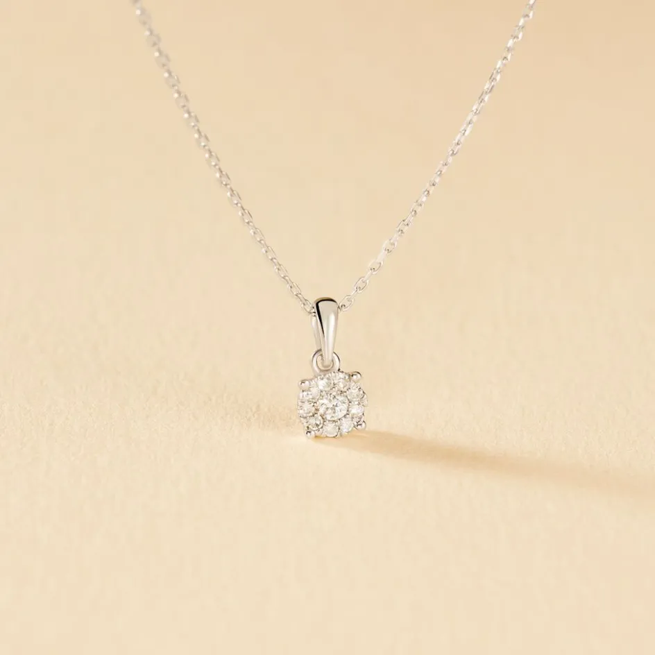 Collier Or Blanc 375/1000 Multipierre Diamants 42cm