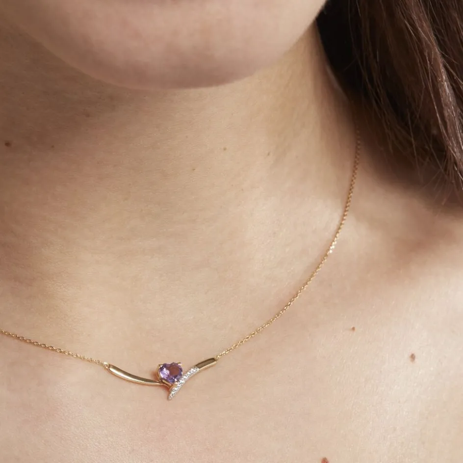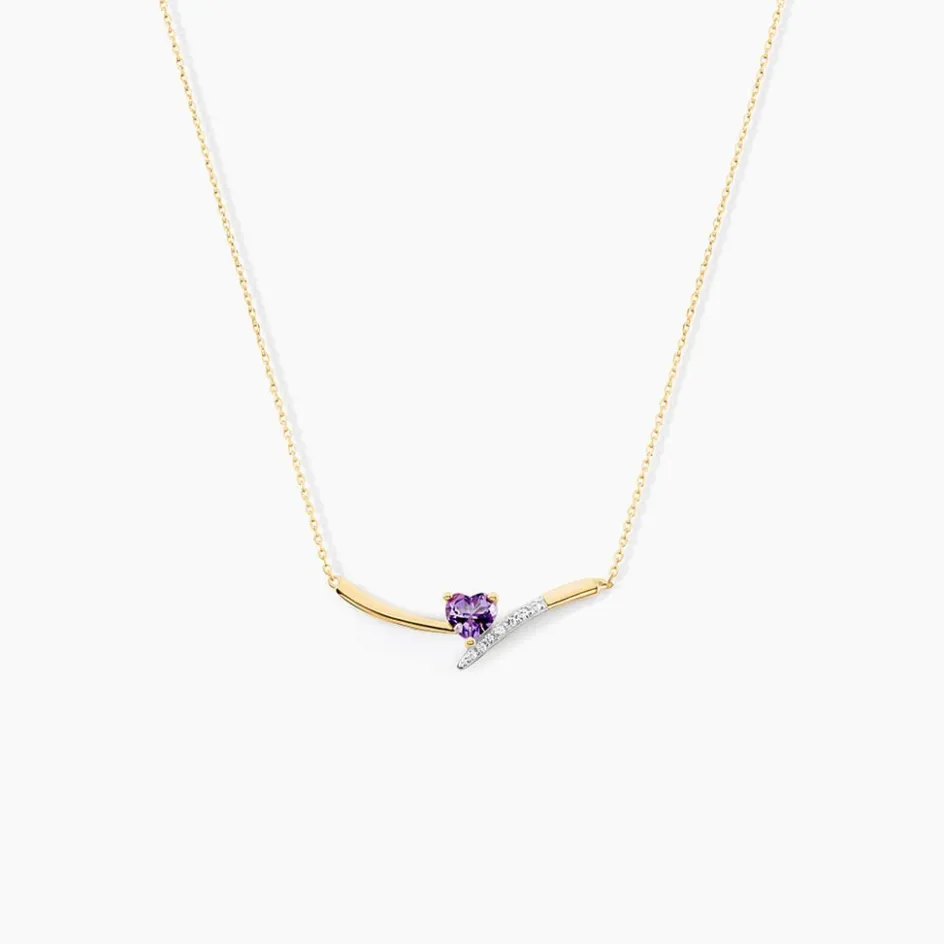 Collier Or Jaune 375/1000 Améthyste Forme C艙ur Et Oxydes De Zirconium Lovin 43cm