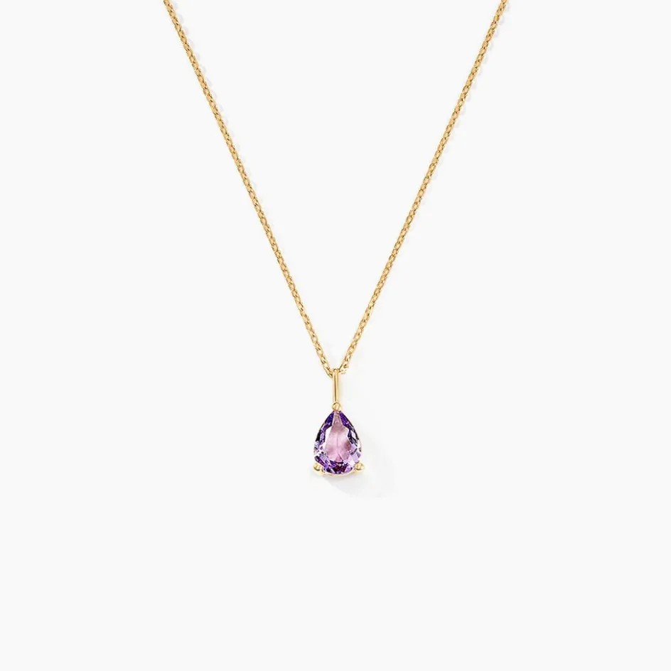 Collier Or Jaune 375/1000 Maille Forçat Améthyste Poire 0.46mm 45cm