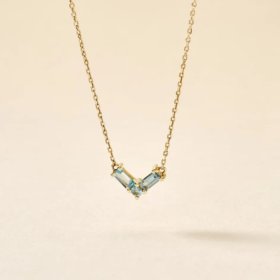 Collier Baguette Or Jaune 375/1000 Topaze Bleu Sky Serti 4 Griffes Maille Forcat 40+2cm