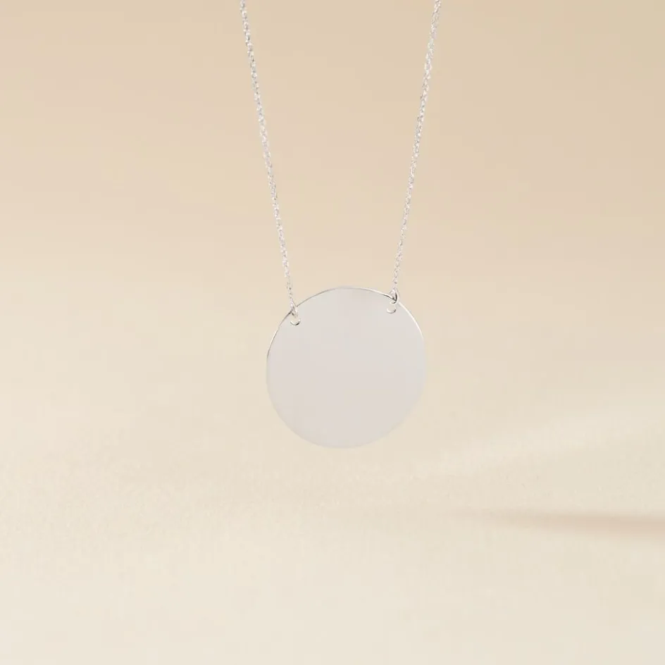 Collier Or Blanc 375/1000 Pastille Gravable Maille Forcat 42cm