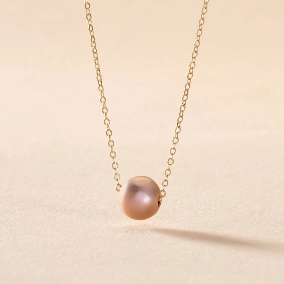 Collier Or Jaune 375/1000 Perle De Culture Ronde Rose 6.5/7mm 42cm
