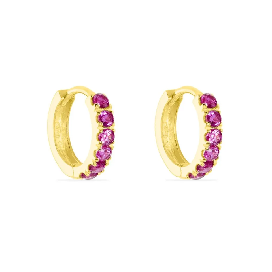 Creoles Or Jaune 375/1000 Serti 4 Griffes Oxydes De Zirconium Roses