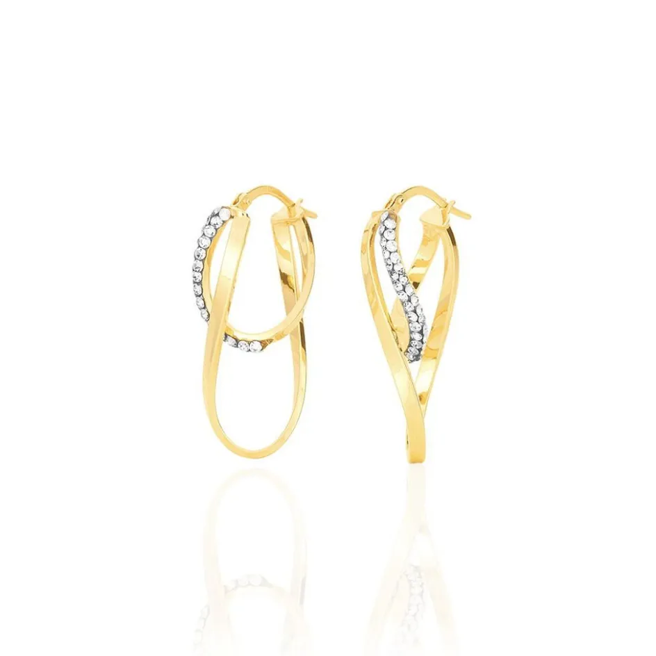 Créoles Or Jaune 375/1000 Deux Fils Carrés Dont Un Fil Avec Strass Largeur 2mm Diamètre 30x9mm