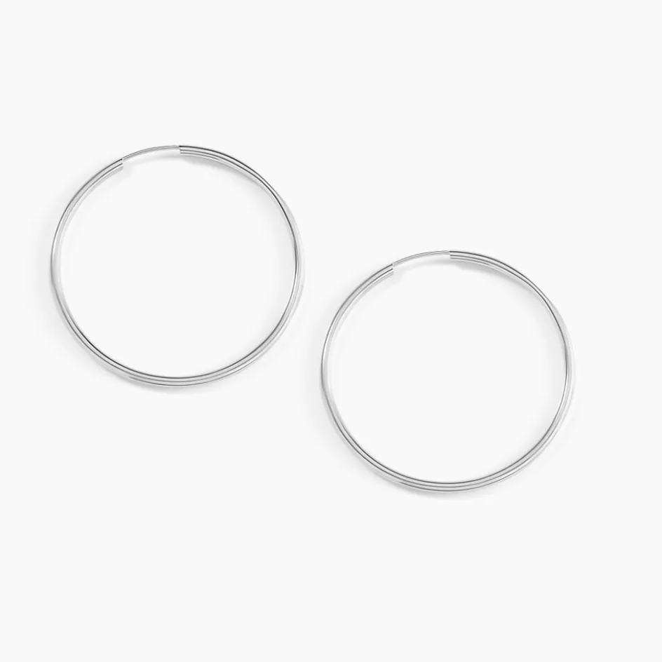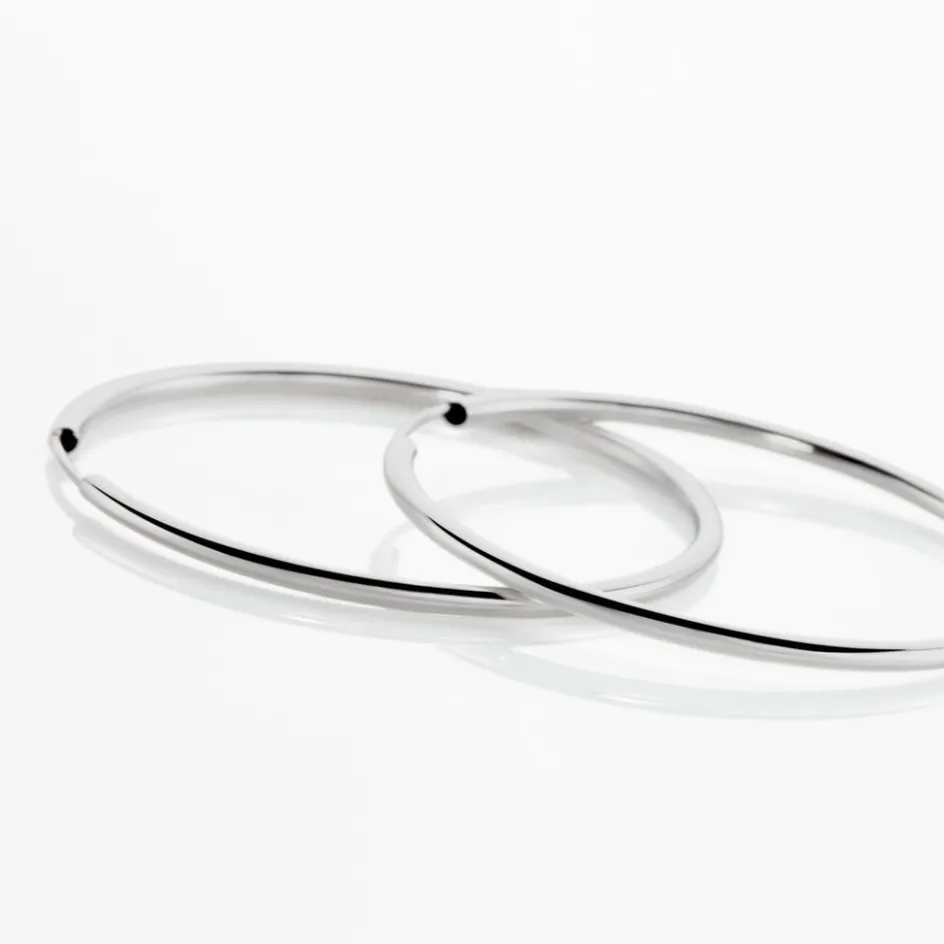Créoles Or Blanc 375/1000 Fil Flexible Lisse Largeur 1.6mm Diamètre 35mm