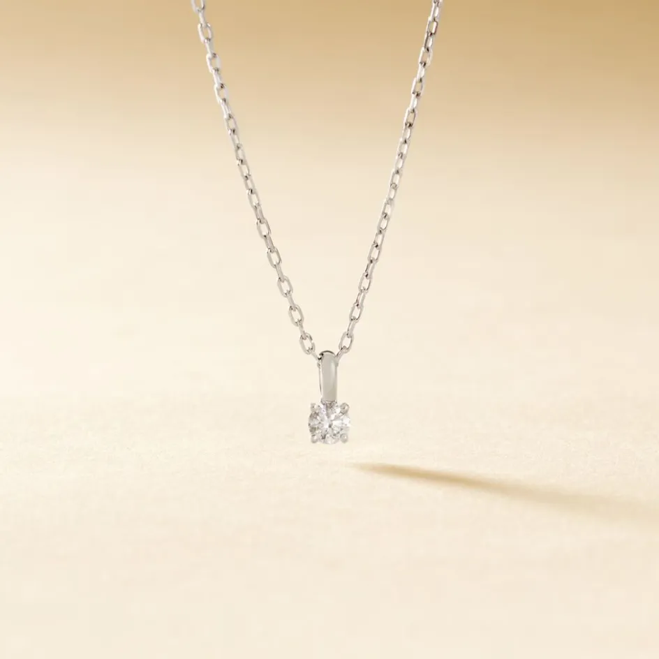 Pendentif Solitaire Or Blanc 375/1000 Diamant 0.25cts Serti 4 Griffes