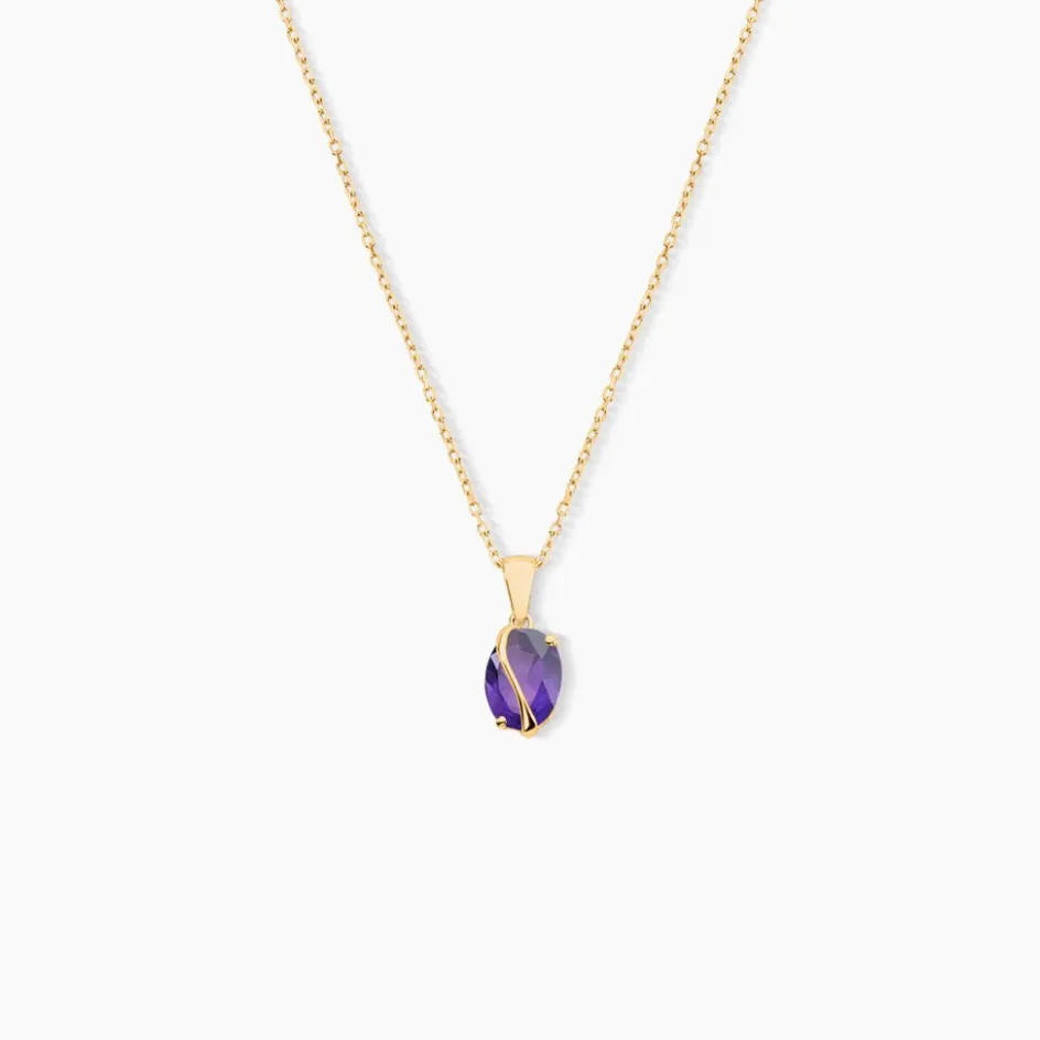 Pendentif Or Jaune 375/1000 Améthyste Violette Ovale 1cts Serti 4 Griffes
