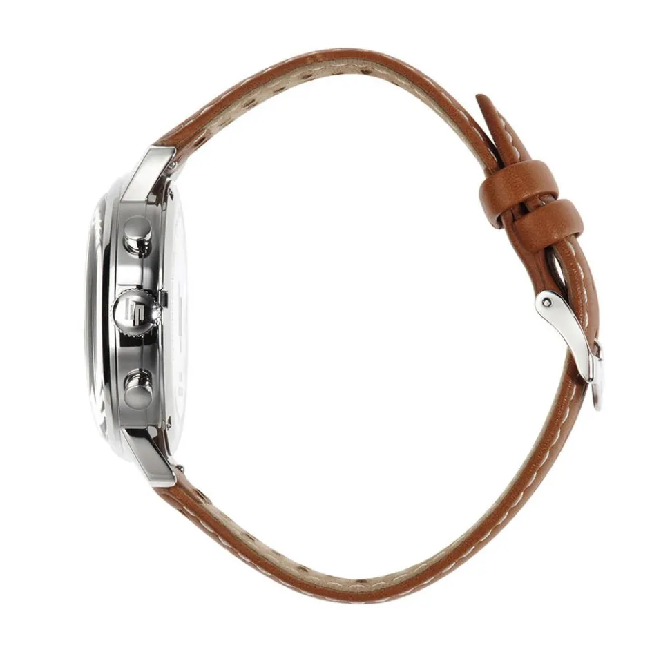 Montre Lip Rallye Meca Quartz Acier Inoxydable Argenté Quartz Chronographe Ronde 39Mm Fond Vert Bracelet Cuir De Veau Ajoure Marron Clair 671806