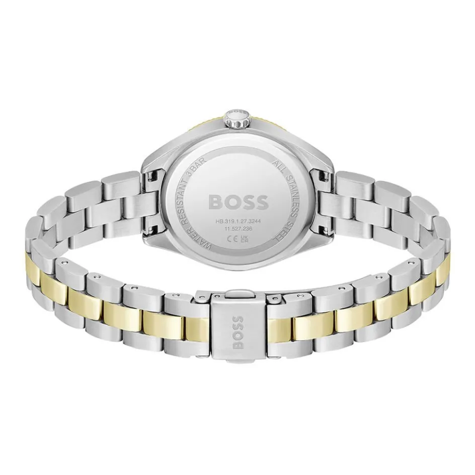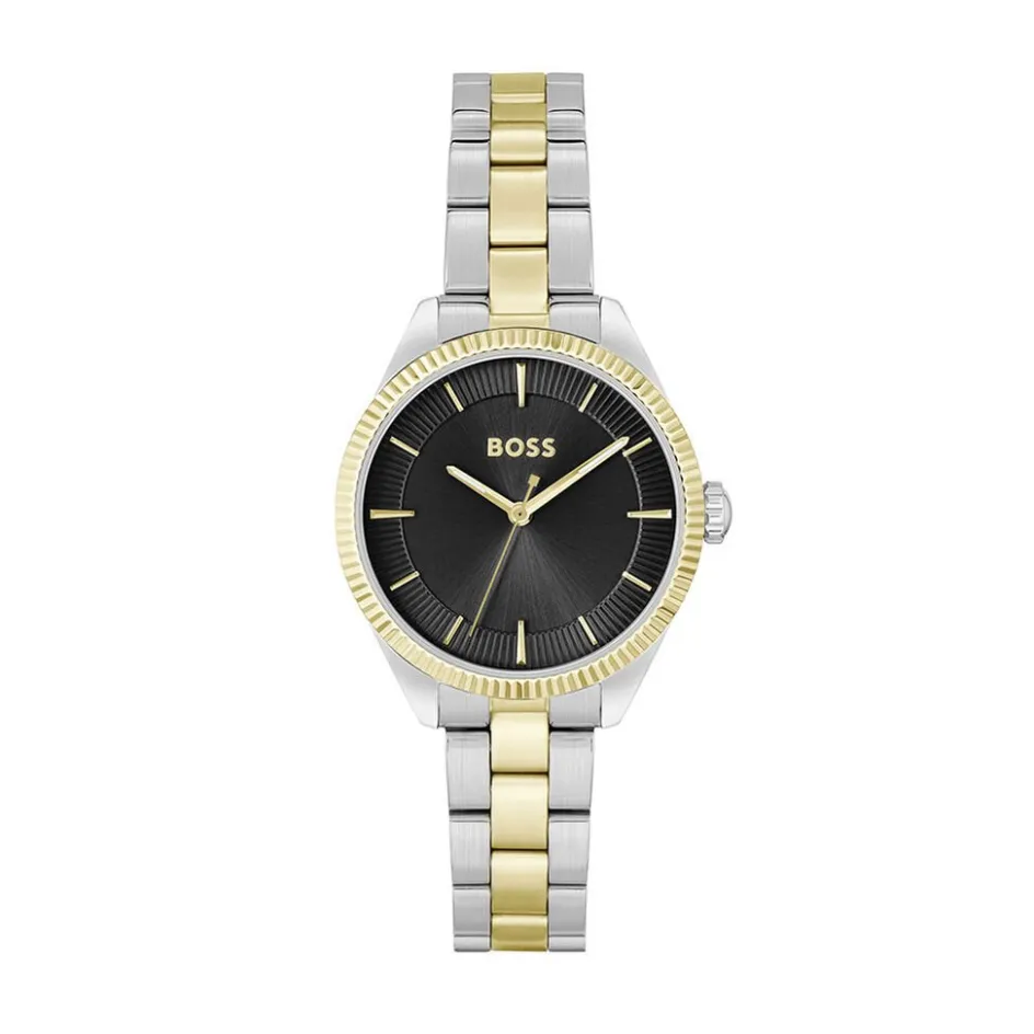 Montre Boss Sage Acier Argente Rond Quartz 32mm Fond Noir Bracelet Acier Bicolore 1502730