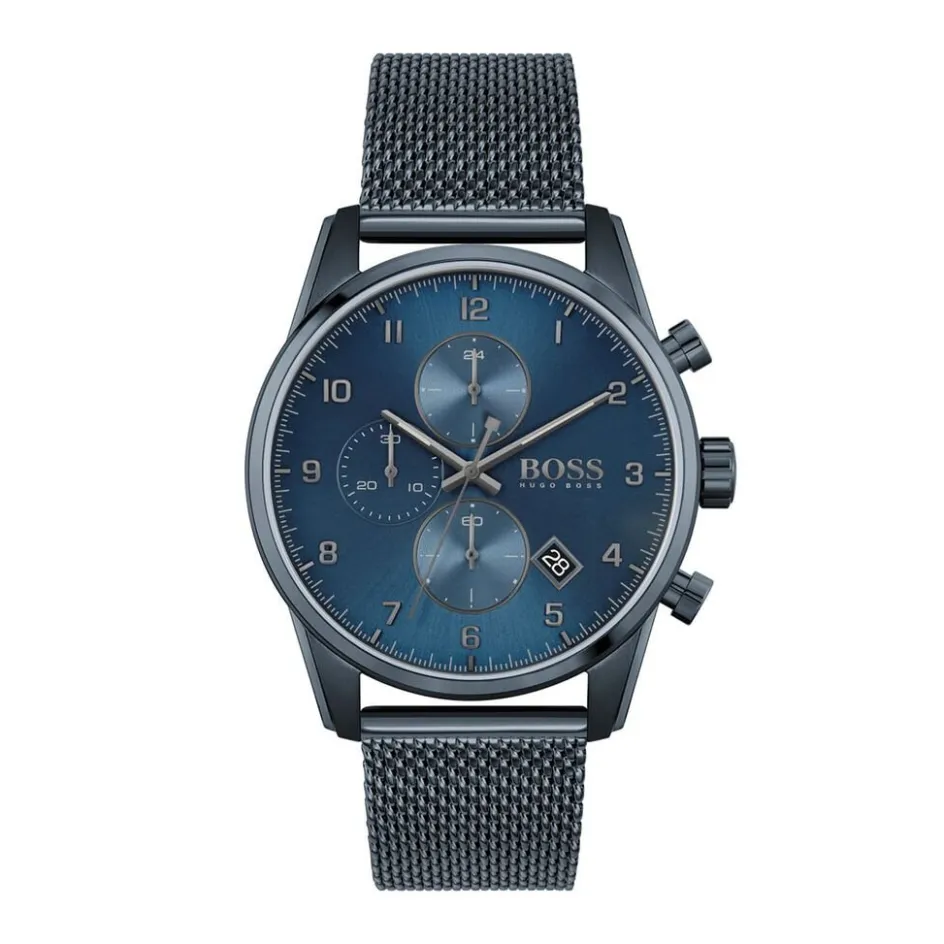 Montre Boss Skymaster Acier Bleu Ronde Quartz Chronographe 44mm Fond Bleu Bracelet Acier Bleu 1513836