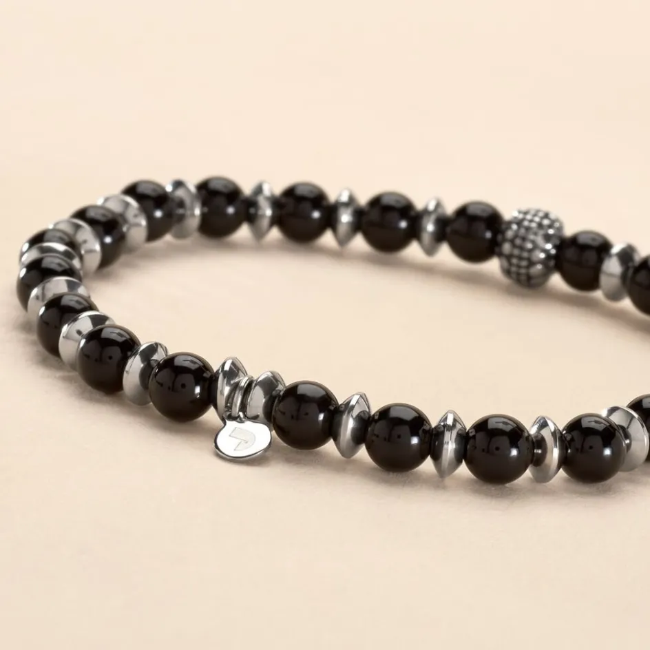 Bracelet Jourdan Homme Acier Gris Onyx Noir Elastique Jh250003b