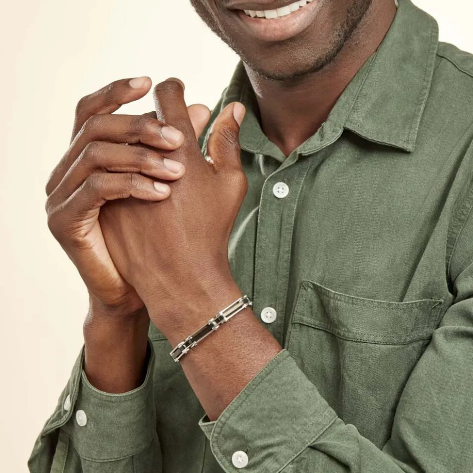 JOURDAN Bracelet Homme El Castillo Acier Bicolore Noir Et Blanc* Bracelets|Bracelets Fantaisie