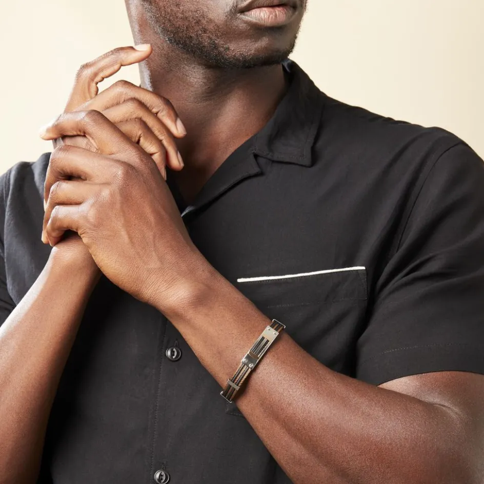 Bracelet Or Rose Et Acier + Cables Marron Et Caoutchouc 18.5/19mm