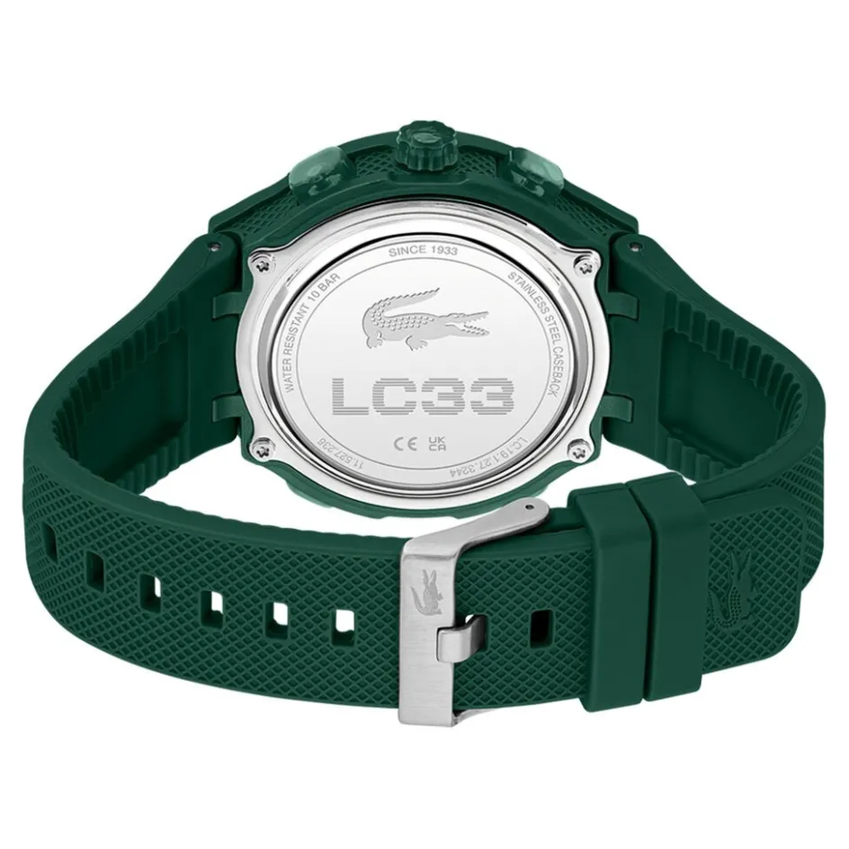 Montre Lacoste Lc33 Tr90 Vert Quartz Anadigit Multifonctions Ronde 44Mm Fond Vert Bracelet Silicone Vert 2011449