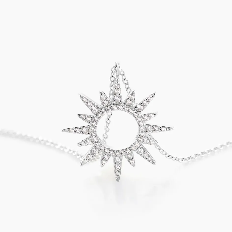 Collier Argent Blanc 925/1000 Soleil Ajoure Pavage Oxydes De Zirconium 45cm