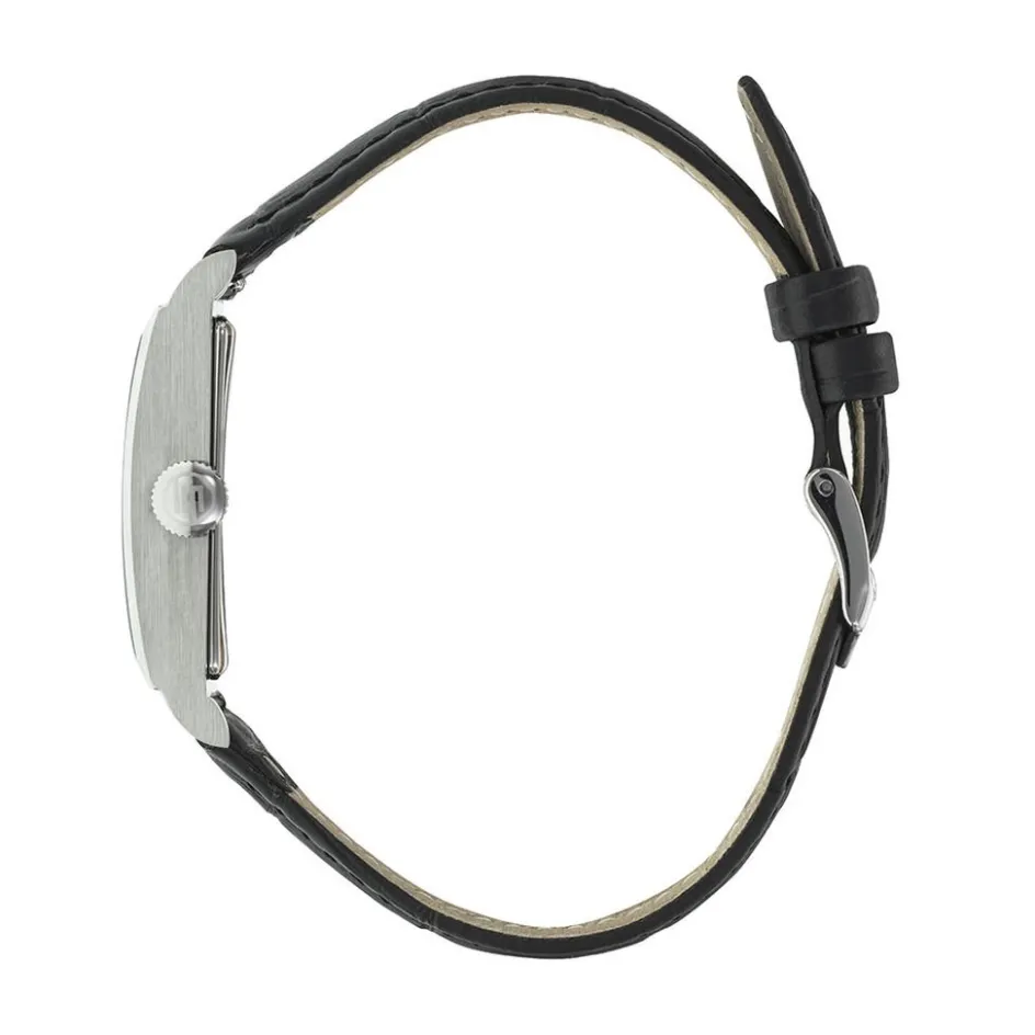 Montre Lip Churchill T24 Acier Inoxydable Argenté Quartz Rectangulaire 23,5X41,5Mm Fond Argenté Bracelet Cuir De Veau Noir 671944
