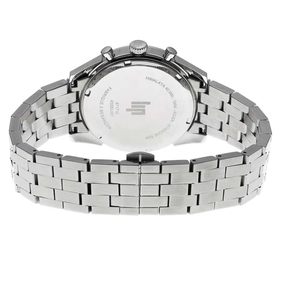 Montre Lip Himalaya Chrono Acier Argente Ronde Quartz Chronographe 40mm Fond Bleu Bracelet Acier Argente 671710