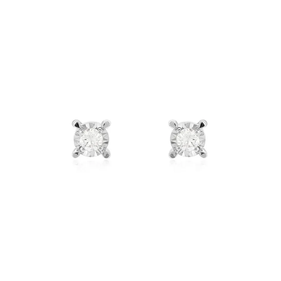 Boucles D’oreilles Puces Or Blanc 375/1000 Diamants 0.11 Cts