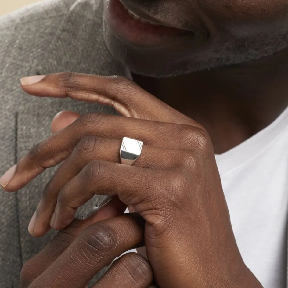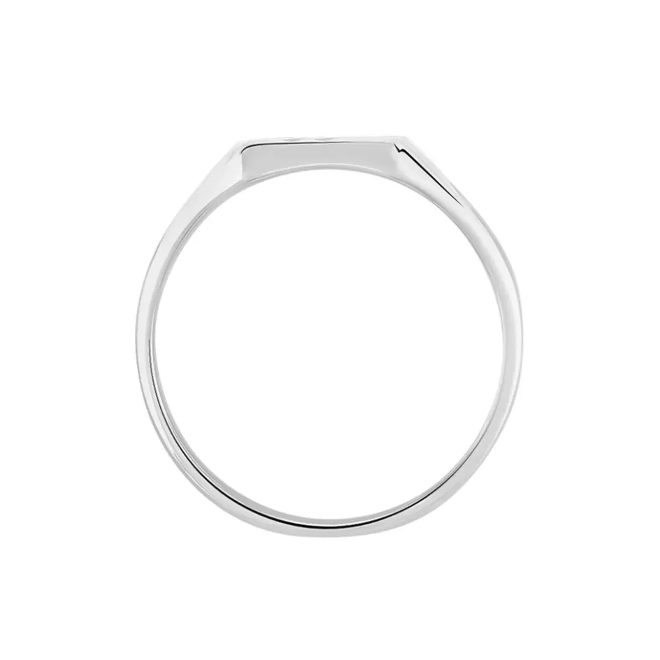 Chevaliere Argent Blanc 925/1000 Plateau Carre Cisele Pm