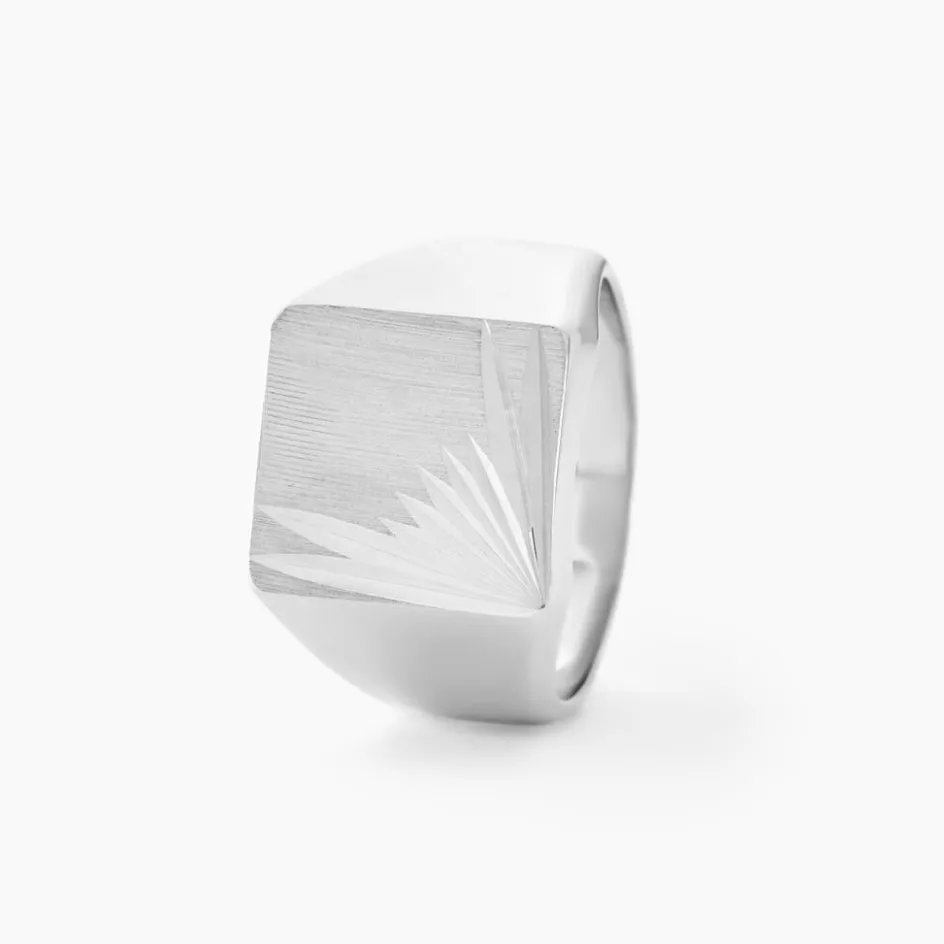 Chevaliere Argent Blanc 925/1000 Plateau Carre Cisele Soleil Gm