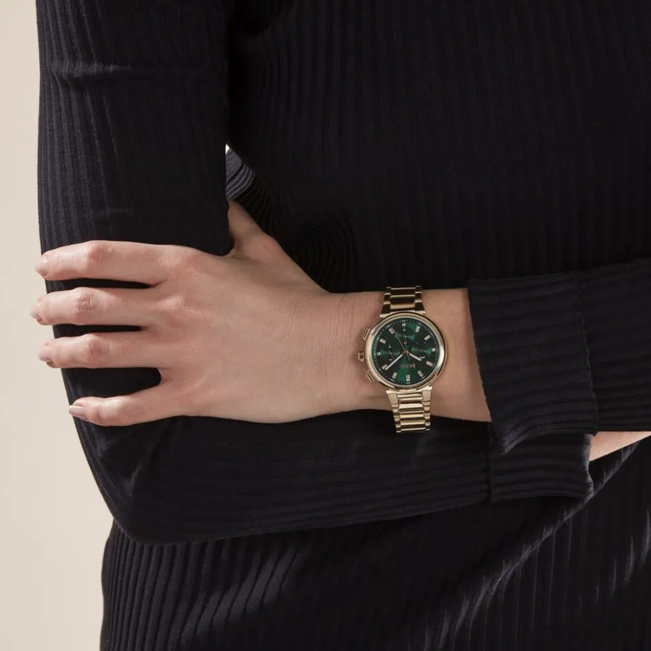 Montre Boss One Acier Doré Ronde Quartz 38mm Fond Vert Bracelet Acier Doré 1502679