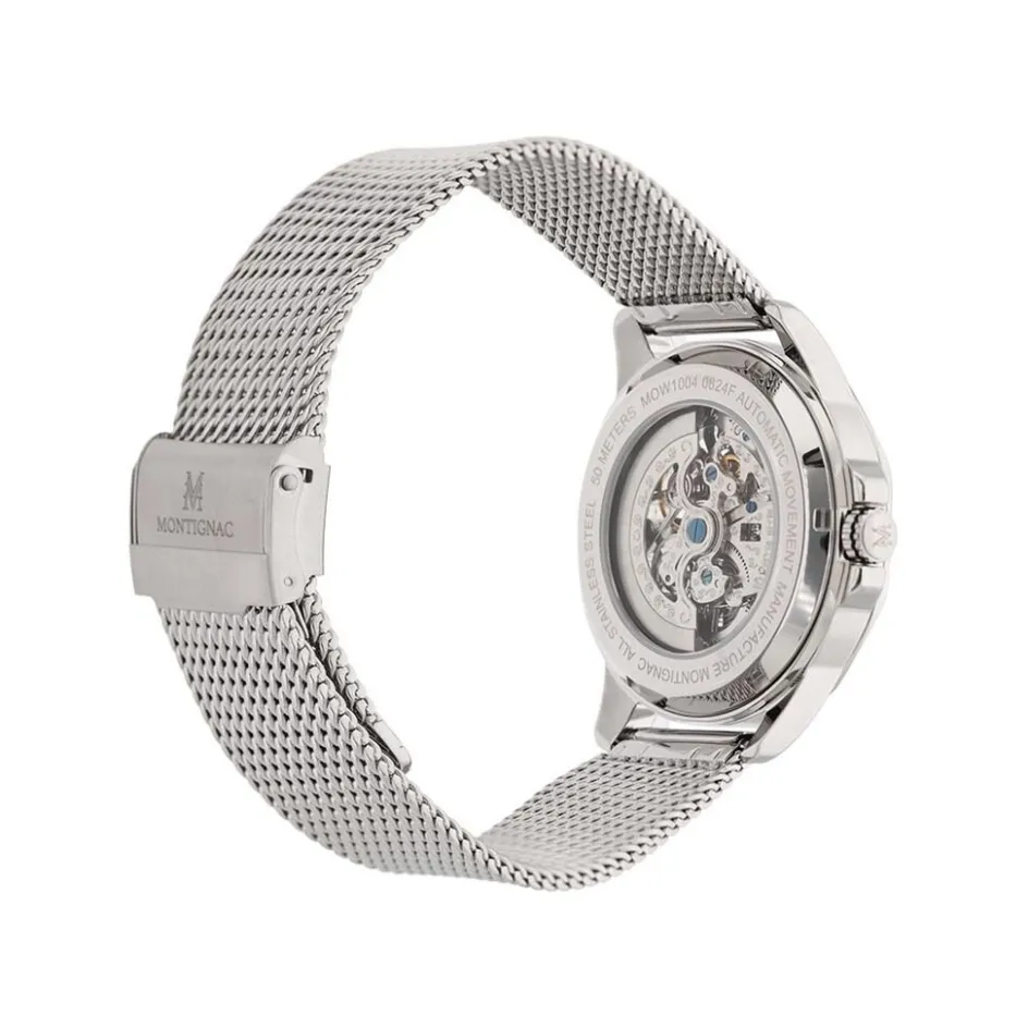 Montre Montignac Round Automatique Acier Argente Ronde Automatique 42mm Fond Noir Bracelet Acier Argente Milanais Mow1004