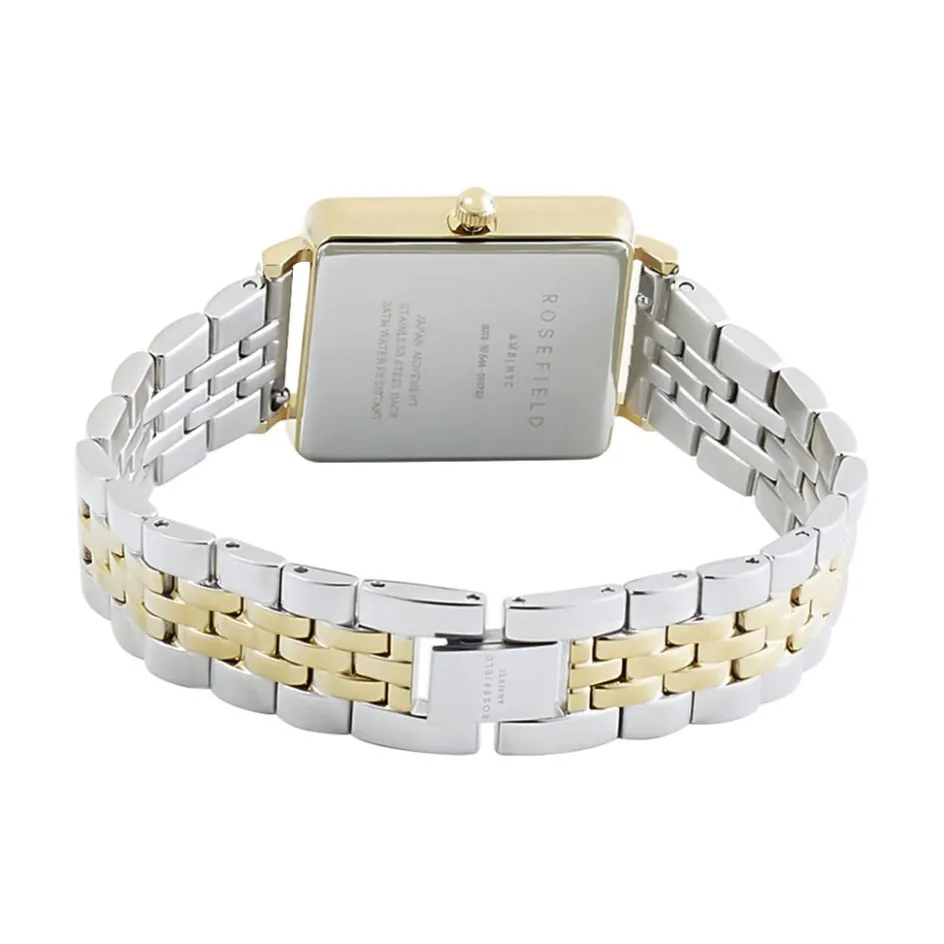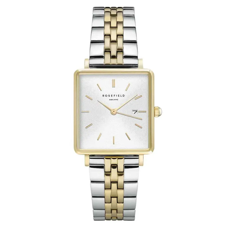 Montre Rosefield Boxy Acier Doré Carré Quartz 26x28mm Fond Blanc Bracelet Acier Bicolore Qvsgd-q013