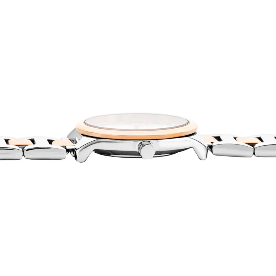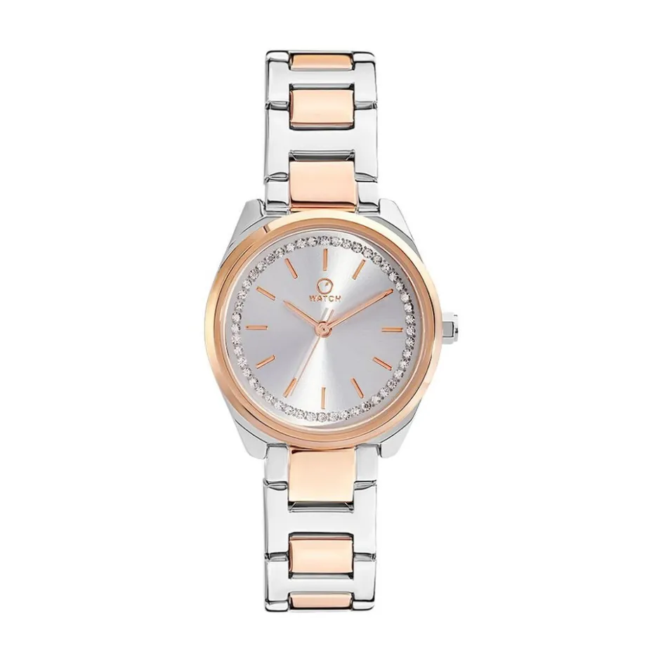 Montre O Watch Stylish Alliage Argenté Ronde Quartz 29mm Fond Argenté Bracelet Acier Bicolore P101010-f