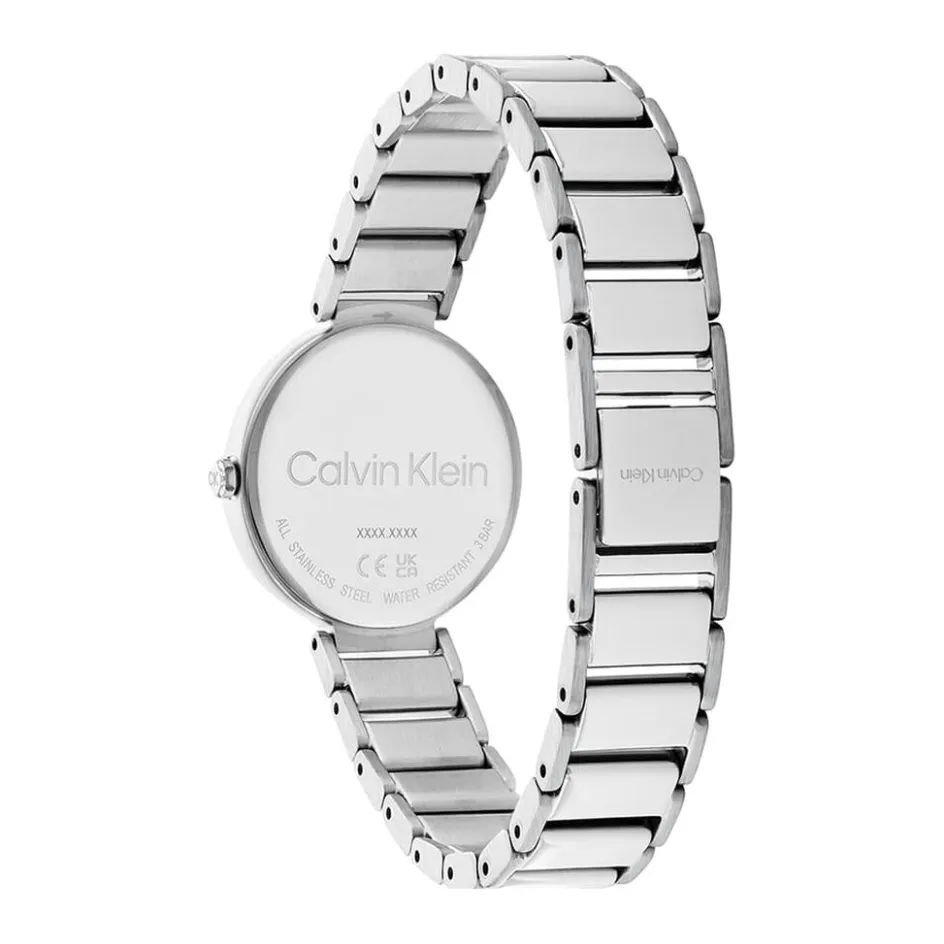 Montre Calvin Klein Minimalistic T Bar Acier Blanc Ronde Quartz 28mm Fond Rose Bracelet Acier Argenté 25200138