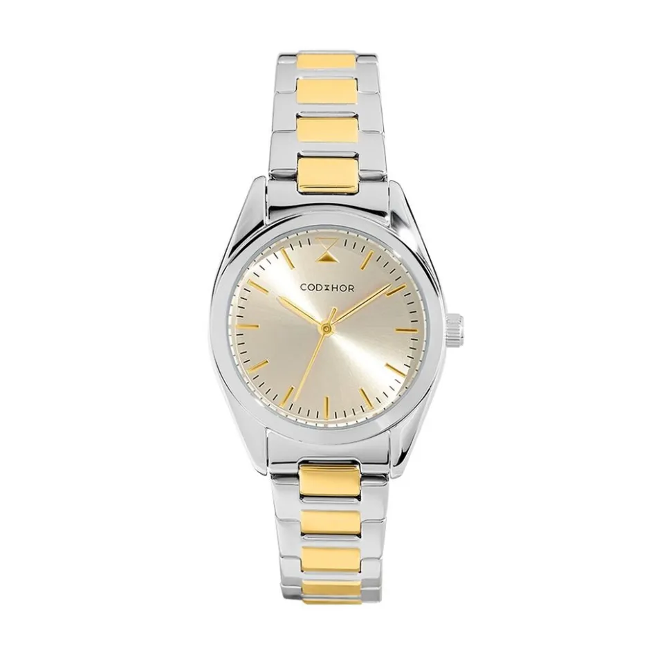 Montre Codhor Sacha Alliage Argenté Ronde Quartz 32mm Fond Doré Bracelet Acier Bicolore Ch.3704la/01m