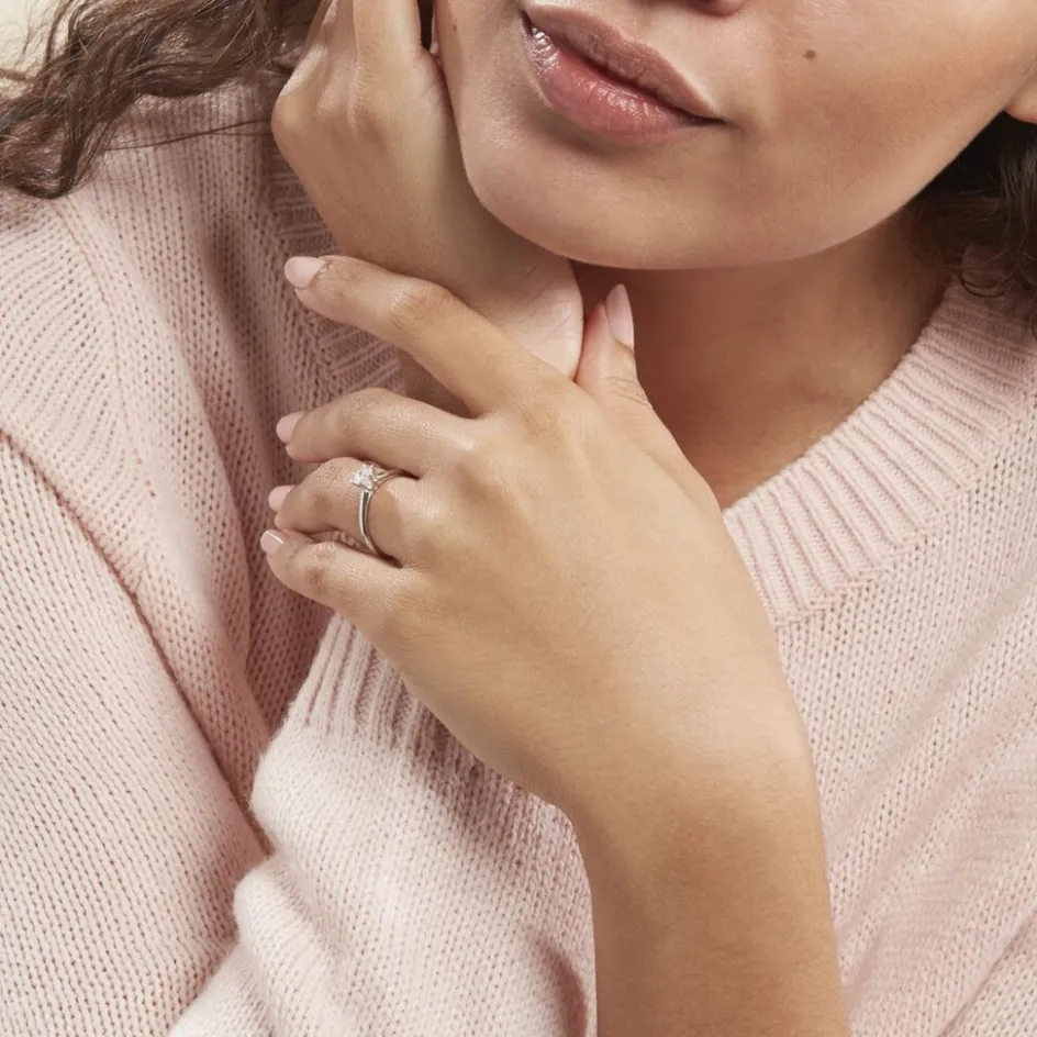 Solitaire Or Blanc 750/1000 Diamant 0.40ct Serti 6 Griffes
