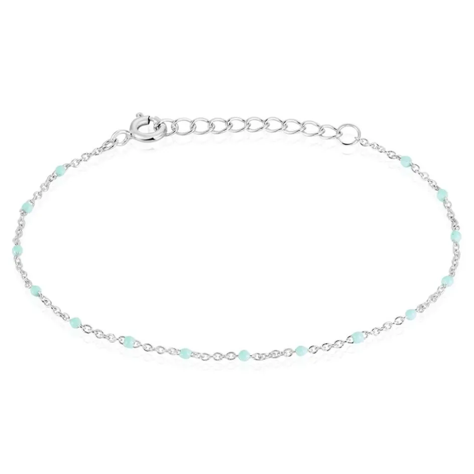 Bracelet Argent 925/1000 Email Vert D’eau 18.5cm