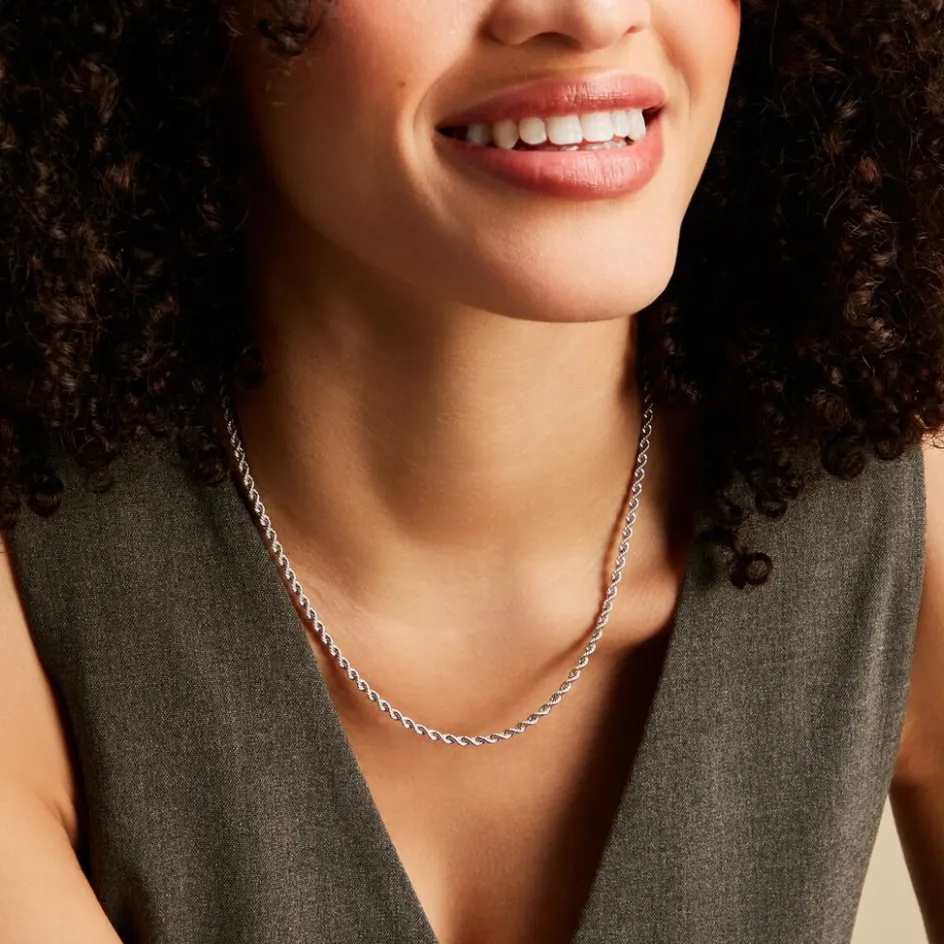 Chaine Or Blanc 375/1000 Maille Corde Largeur 2.7mm 55cm