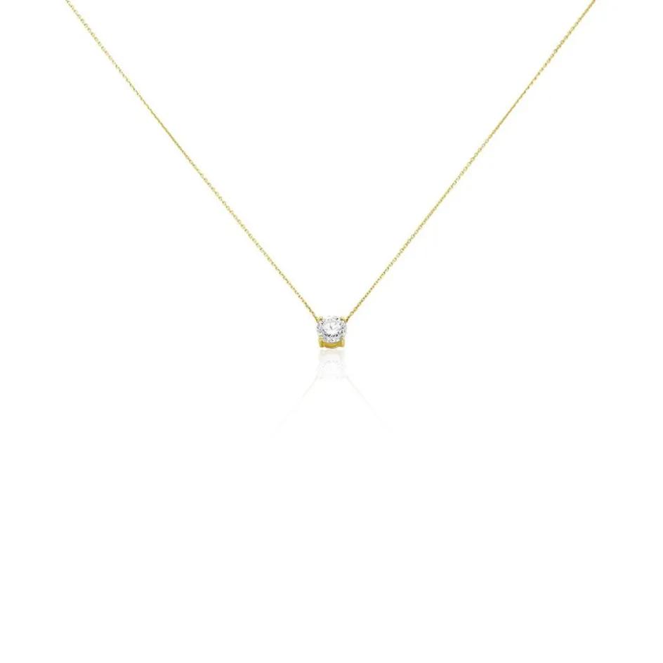 Collier Or Jaune 750/1000 Solitaire Diamant Synthetique 1ct 45cm