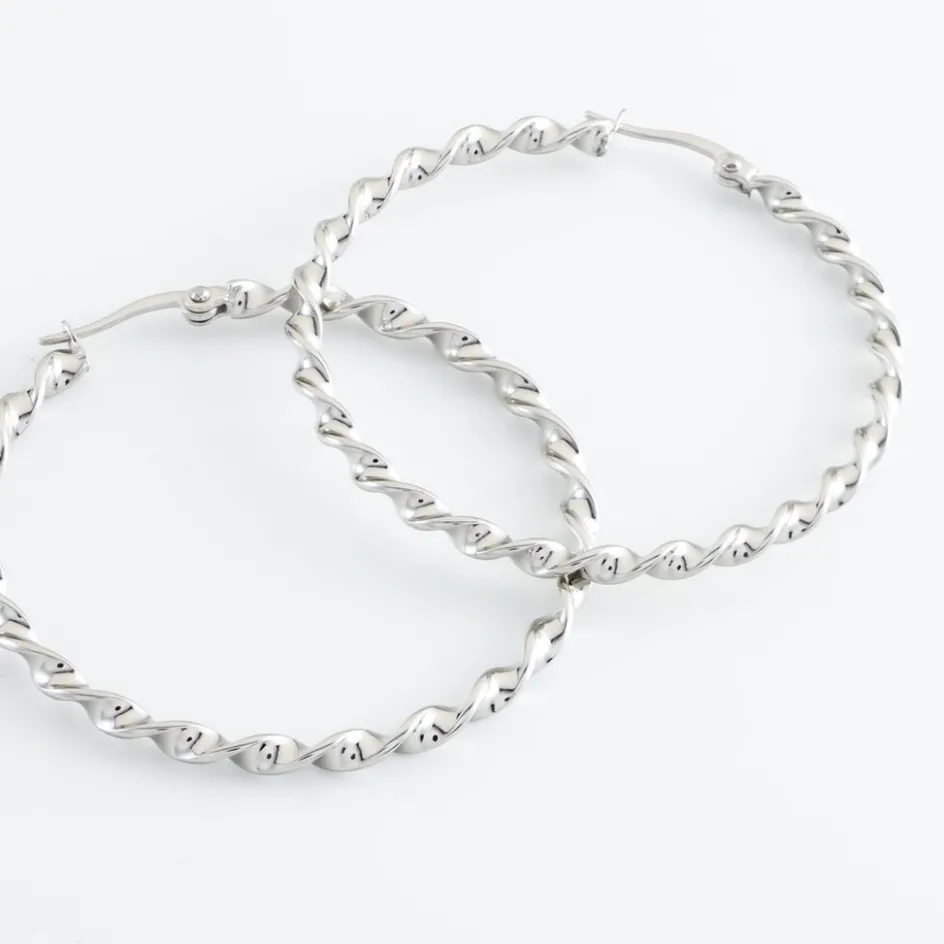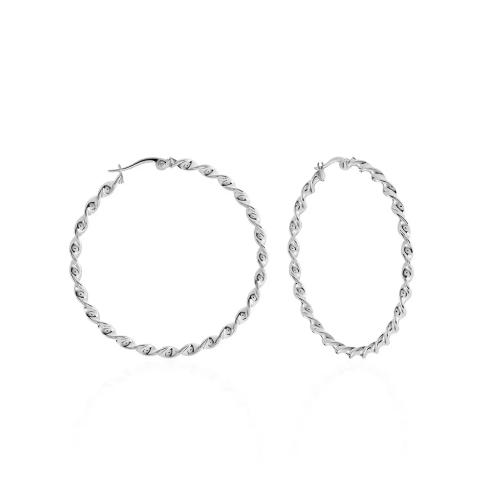 Créoles Acier Inoxydable Blanc Torsadees Largeur 3mm Diametre 40mm