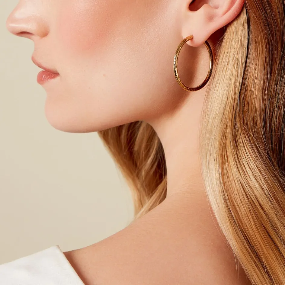 Créoles Acier Inoxydable Jaune Effet Texturé Et Lisse Largeur 2.5mm Diamètre 30mm