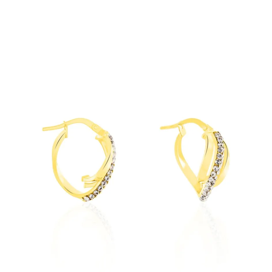 Créoles Or Jaune 375/1000 Trois Fils Carrés Dont Un Fil Avec Strass Largeur 2mm Diamètre 15x10mm