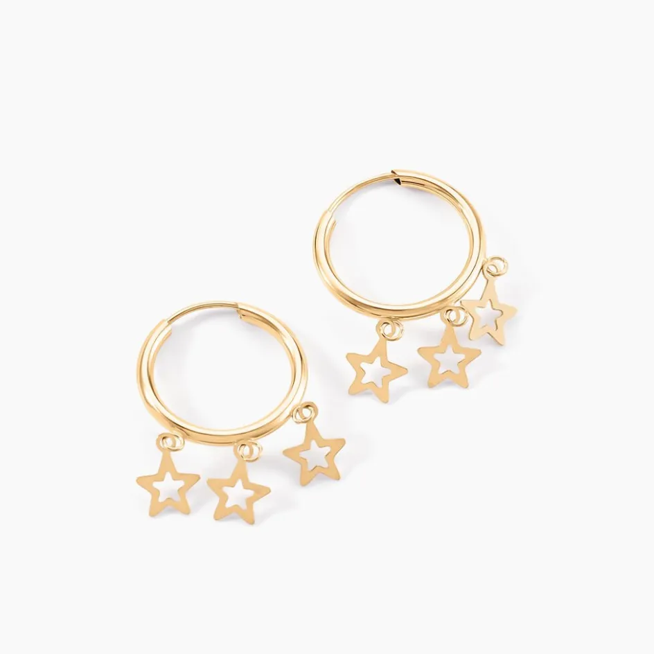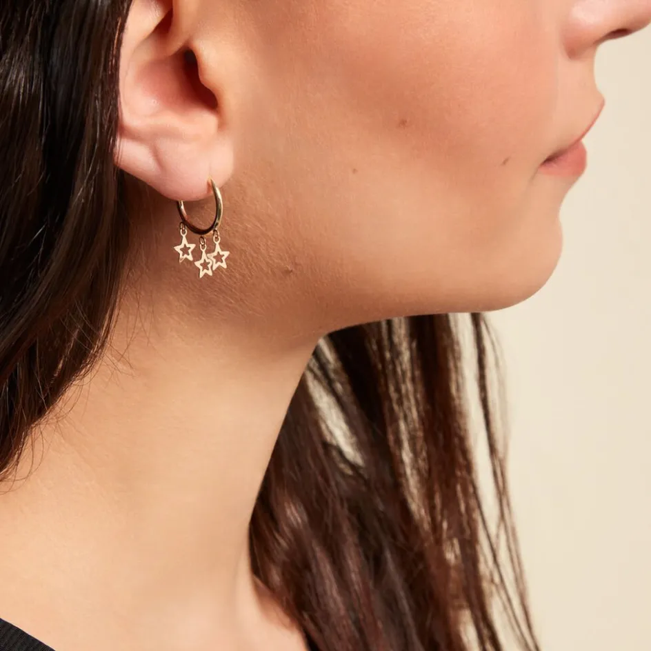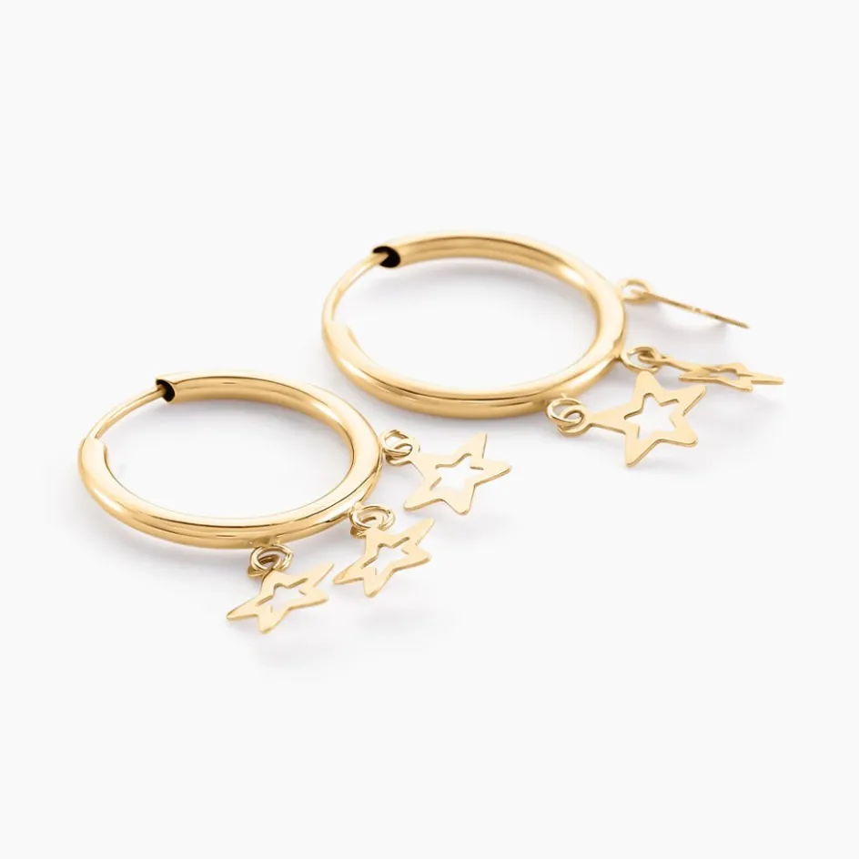 Créoles Or Jaune 375/1000 Pampilles Etoiles Fil Rond Lisse Largeur 1.75mm Diamètre 12mm