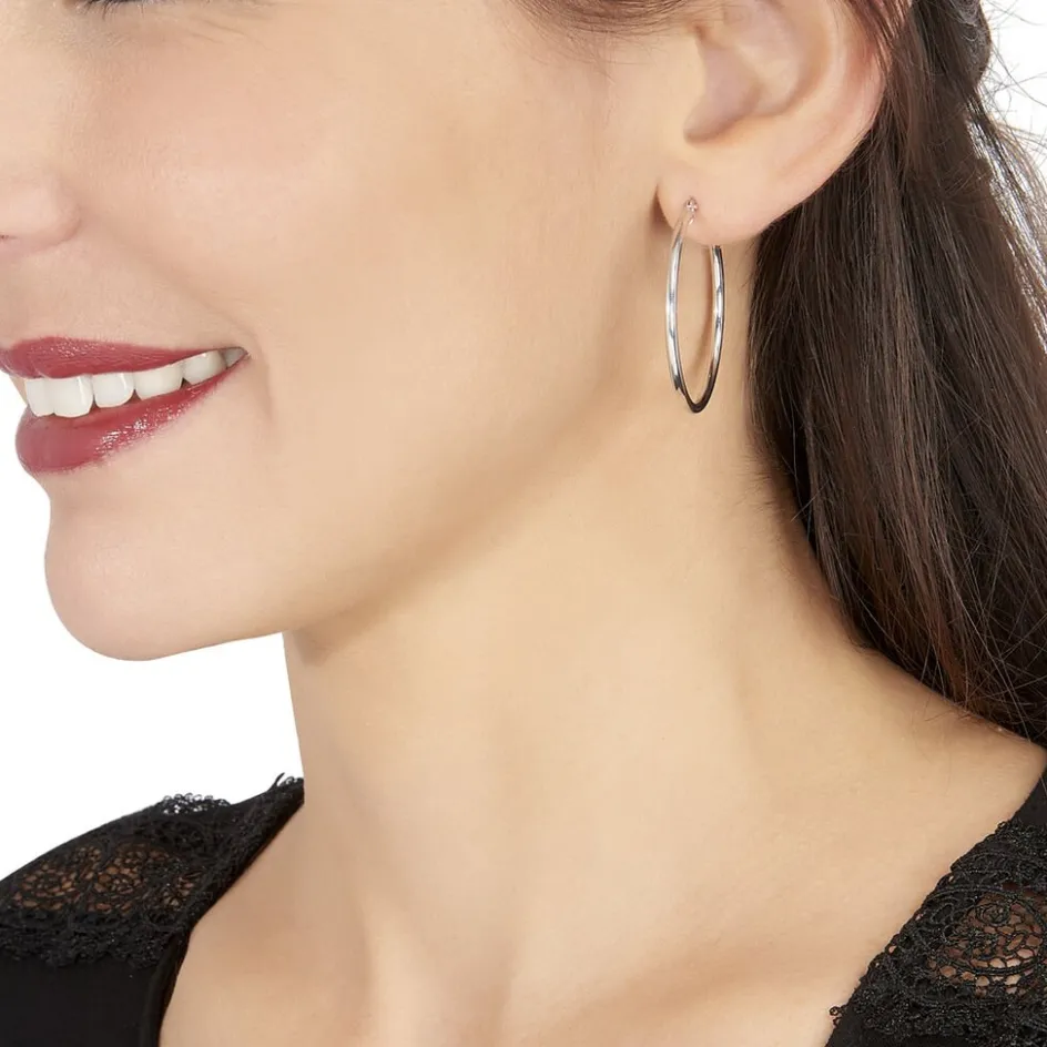 Créoles Or Blanc 375/1000 Fil Rond Lisse Largeur 2mm Diamètre 30mm